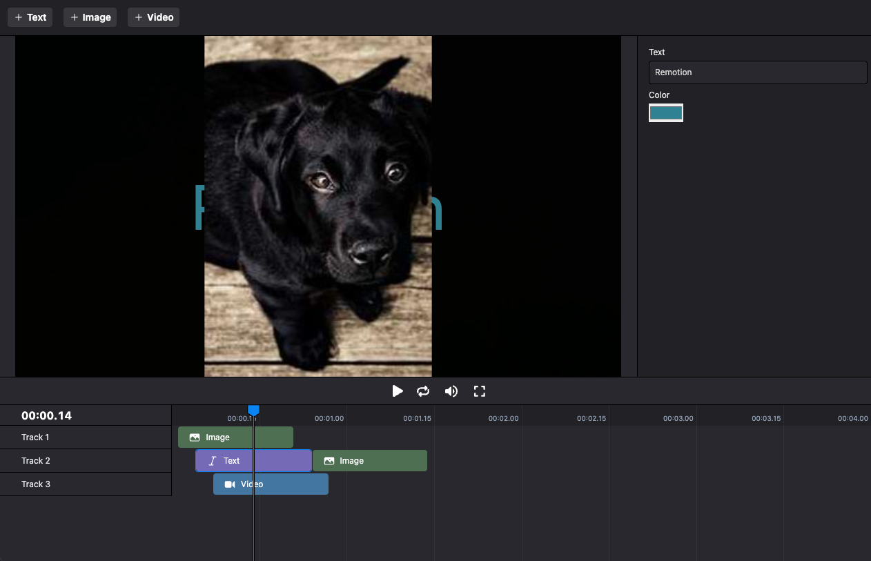 remotion/Timeline.tsxtsxEditor :React .FC = () => {const [tracks ,setTracks ] =useState <Track []>([{name : 'Track 1',items : []},{name : 'Track 2',items : []},]);constinputProps =useMemo (() => {return {tracks ,};}, [tracks ]);return (<><Player component ={Main }fps ={30}inputProps ={inputProps }durationInFrames ={600}compositionWidth ={1280}compositionHeight ={720} /><Timeline tracks ={tracks }setTracks ={setTracks } /></>);};