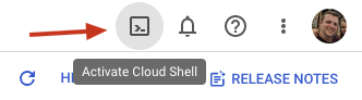 In the top right hand corner of the screen, click the Activate Cloud Shell icon